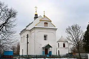 ![]() Успенська церква разом з дзвіницею (вигляд з південного заходу) | |