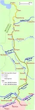 Дортмунд — Вальтроп — Даттельн — Ольфен — Людінггаузен — Зенден — Мюнстер — Грефен — Іббенбюрен — Герстель — Райне — Емсбюрен — Лінген — Гесте — Меппен — Гарен — Фрезенбург — Дерпен — Реде — Папенбург — Венер — Геде — Лее — Емден.