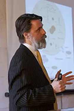 ![]() Віктор Досенко під час лекції (2012) | |
