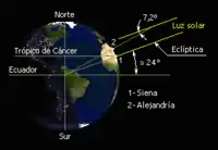 | Дослід Ератосфена з вимірювання радіусу землі | |