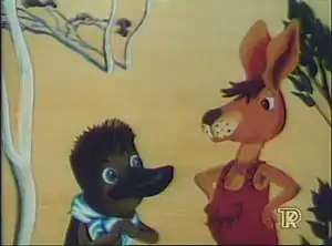 На початку мультфільму глядач бачить, як десь у Австралії малесеньке озеро перетворюється у хмаринку. Хмаринка летить собі геть, а качконіс залишається ні з чим і плаче. Як тут повз нього прострибує кенгуру і той обіцяє йому знайти хмаринку. Друзі йдуть разом шукати озеро, яке випарувалось. Дорогою кенгуру вихваляється, як він захистився від лева, використавши насіння бамбука, яке дуже швидко росте; як він втік від величезної пащі крокодила за допомогою сковорідок на воді та як він завдяки шалених огірків налякав вовків з гострими зубами. З цих розповідей качконіс дізнається, що кенгуру дуже високо літає, довго стрибає та ще й розумний. Але коли обоє приходять на найвищої гори і виявляється, що кенгуру не дострибує до хмаринки, то качконоса опановує розчарування. Але все ж таки кенгуру вдається дострибнути до хмарки і він радий з того, що навчився стрибати високо. Друзі приходять на висохле озеро і кладуть на землю хмаринку.