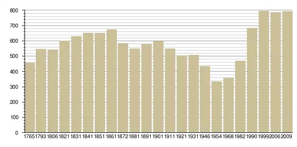 Динаміка населення (Baratier, Duby & Hildesheimer pour l’Ancien Régime[3] ; Insee[4], EHESS pour les chiffres issus des recensements légaux ):