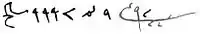 | Руські письмена. Мені розповідав один, на правдивість якого я покладаюся, що один із царів гори Кабк [Кавказ] послав його до царя Русів; він стверджував, що вони мають письмена, вирізували на дереві. Він же показав мені шматок білого дерева, на якому були зображення, не знаю чи були вони словами, або окремі літери, подібно до цього. |