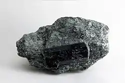 Чорний кристал дравіту у осадовій породі