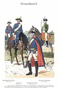 Драгуни 1763—1778 рр. і карабінерський унтер-офіцер (крайній ліворуч)