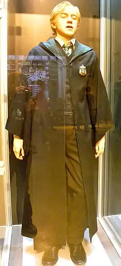 На Різдвяному балі на Мелфої була «чорна оксамитова мантія з високим коміром». Його супутницею була Пенсі Паркінсон.