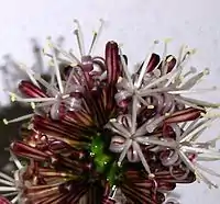 - Під час теплих злив наливаються квіти, зібрані в пучок по кілька штук[3] , схоже, як збираються квіти в мініатюрних троянд[4].