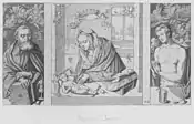 Дві бічні віконниці були додані пізніше у 1503—1504 роках, можливо, після епідемії чуми[3]. Такому припущенню сприяють зображнені сюжети: святий Себастьян, покровитель заражених, та святий Антоній Ігумен, захисник від ерготизму.