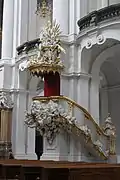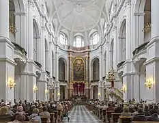 У розкішному внутрішньому оздобленні Кафедрального Собору Св. Трійці особливої уваги заслуговують кафедра в стилі рококо роботи Б. Пермозер, величезний орган — остання й найзначніша робота найкращого майстра органних справ Йоганна Зільбермана, а також чудові вівтарні прикраси. Крім того, під церквою розташовуються 4 склепи з 49 саркофагами курфюрстів і королів Саксонії з роду Веттинів, а також серце Августа Сильного, тіло якого покоїться в кафедральному соборі Кракова.