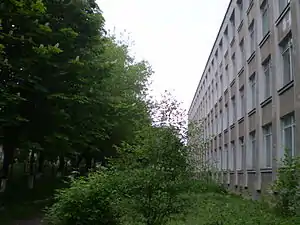 А от каштани, липки, дубки, акації та інші дерева за минулі роки підросли, скоро доженуть в висоту дах четвертого поверху й майже повністю закривають корпус зі сторони вулиці Грушевського.