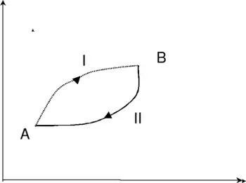 Він складається з двох частин: незворотного процесу AIB і оборотного BIIA, за допомогою якого тіло повертається в початковий стан. Цикл AIBIIA незворотний через незворотність процесу AIB. Перший інтеграл Клаузіуса можна записати у вигляді