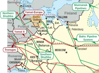 Збудований для транспортування нафти з Росії в країни Центральної та Західної Європи.