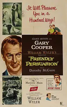 «Дружнє настановлення» (англ. Friendly Persuasion) — американський фільм 1956 року, поставлений режисером Вільямом Вайлером за однойменним романом Джессеміна Веста. Фільм здобув Золоту пальмову гілку 9-го Каннського кінофестивалю 1957 року