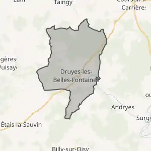 - Druyes-les-Belles-Fontaines sur le site de l'Insee, наведено за французькою вікіпедією