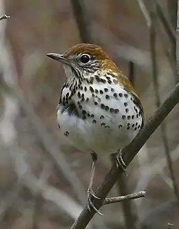 Дрізд лісовий[2] (Hylocichla mustelina) є представником північноамериканських горобцеподібних. Він споріднений з іншими дроздами, такими як дрізд мандрівний, і широко поширений по всій Північній Америці, зимуючи в Центральній Америці та на півдні Мексики. Дрізд лісовий вважається офіційним птахом округу Колумбія[3].