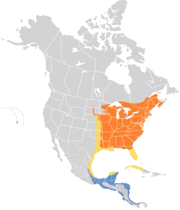 Ареал розмноження дроздів простягається від Манітоби, Онтаріо та Нової Шотландії на півдні Канади до півночі Флориди і від узбережжя Атлантики до річки Міссурі та східних Великих рівнин . Взимку він мігрує на південь Мексики через Панаму в Центральній Америці, переважно в низинах уздовж узбережжя Атлантичного та Тихого океанів[14]. Як правило, вони прибувають на узбережжя затоки США протягом першого тижня квітня. Осіння міграція зазвичай починається в середині серпня і триває до середини вересня. Птахи мігрують уночі, [12], знаходячи напрямок за зірками і орієнтуючись за магнітним полем Землі[16].