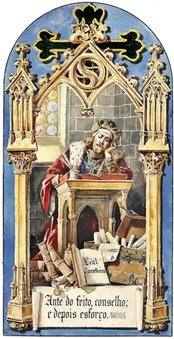 - лат. Edwardus, Dei gratiâ, Regnorum Portugaliæ & Algarbii Rex, Ceptæque Dominus[19][20]