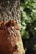 - Грибниці багатьох грибів пов'язані з коренями дерев[3]. Грибні нитки проходять під шкірку коренів. При цьому виявляється, що корені дерев з грибниці висмоктують воду з мінеральними речовинами, а грибниця з коренів — цукор[3]. Нитки гриба ніби замінюють кореням кореневі волоски. Дослідами встановлено, що такі дерева, як дуб і бук, без грибів погано ростуть[3]. Симбіоз гриба і коренів дерева називають мікоризою.