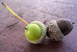 Деякі дуби мають меншу кількість таніну в жолудях, тому позбавити гіркоти їх простіше. Наприклад дуб Келлога, що здавна використовують індіанці в їжу.[7]