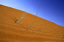 Дубай розташований безпосередньо в Аравійській пустелі. Тим не менш, топографія Дубая значно відрізняється від південної частини ОАЕ в тому, що більша частина пейзажу Дубая складена піщаною пустелею, у той час як у більшій частині південних регіонів країни домінують гравійні пустелі[2]. Пісок складається в основному з подрібнених мушель і коралів і є добрим, чистим і білим. Схід емірату, прибережні рівнини, вкриті кіркою солі, відомої як сабха (англ. sabkha), простягаються з півночі на південь рядами дюн. Далі на схід, дюни стають більшими і забарвлюються в червоний колір, через високий вміст оксиду заліза[3].