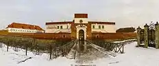 Вид на в'їзну браму із рову