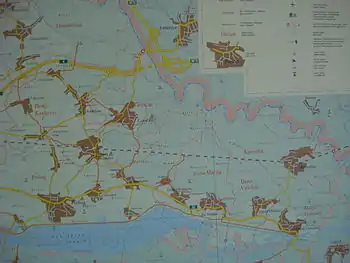 Місто Прелог є єдиним містом на березі водойми, до якої також прилягають сусідні села, такі як Оток, Опоровець, Доній Михалєвець і Света Марія у Меджимурському окрузі та Хржениця і Струга у Вараждинському. Свою назву водоймище дістало від села Доня Дубрава, що розкинулося поряд із місцем, де відвідний канал водосховища зустрічається з природним током Драви, приблизно за 6 км від греблі.