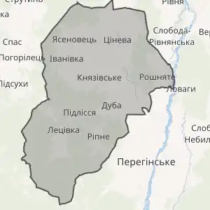 До складу громади входять 11 сіл: Вільхівка, Дуба, Дубшари, Іванівка, Князівське, Лецівка, Підлісся, Ріпне, Рошняте, Цінева та Ясеновець.