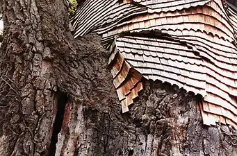 Ідея побудувати таку каплицю прийшла у 17 столітті місцевому абату Де Труа, настоятелю місцевої церковної парафії, після того, як в дуб влучила блискавка, яка розколола і спалила дерево, але воно вижило і стало рости далі, вкрившись зеленим листям. Після такого дива, абат Де Труа з іншим священиком отцем Фате Дю Серко побудували в порожнині, що утворилася після блискавки дві кімнатки-каплиці. Нижня називалася — Notre Dame de la Paix (Каплиця Діви Марії), яка стала місцем паломництва, а верхня — Chambre de l'Ermite (Каплиця Відлюдника), в якій отець Дю Серко прожив відлюдником до смерті, всередині навіть містилося невелике ліжко, на якому він спав.