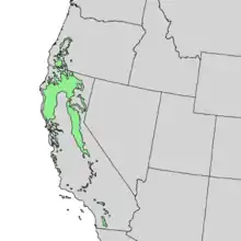 Росте на схилах і в долинах пагорбів і гір на висотах 300–2400 м у Каліфорнії і в південній частині штату Орегон. Росте в змішаних, а також дубових і хвойних лісах. Дерево може рости в багатьох типах ґрунтів, але важливо, щоб ґрунт був добре осушеним.