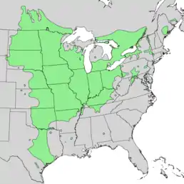 Поширений на півдні Онтаріо (Канада), у центральних і східних частинах США; також культивується[7][8].