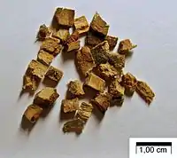 Сировиною для одержання дубильних екстрактів з деревини дуба є пеньки, коріння, а також відходи лісозаготівель і деревообробної промисловості у вигляді полін у корі або без кори. Для дублення шкір кору дуба заготовляють з молодих дерев (до 20-річного віку). На старших деревах утворюється кірка, яка зовсім непридатна і навіть шкідлива при використанні її для дублення. Заготовляти кору можна будь-якої пори року, але краще в період сокоруху (квітень — травень) під час основних рубок і рубок догляду. Зняту зі стовбурів і гілля кору сушать під навісом з хорошою вентиляцією. Відносна вологість сухої кори не повинна перевищувати 16%.