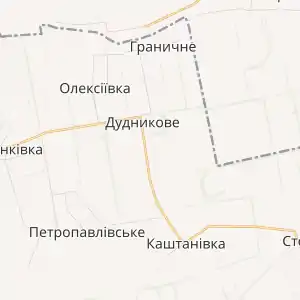 Село Дудникове знаходиться на відстані 2 км від сіл Граничне, Олексіївка, Петропавлівське і Каштанівка.
