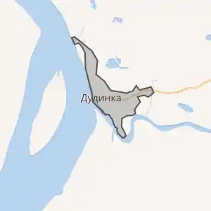 Розташоване за Північним полярним колом, на правому березі Єнісея, біля гирла річки Дудінка.