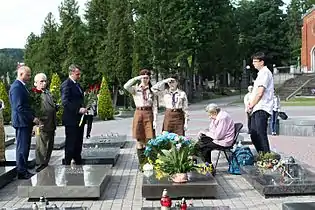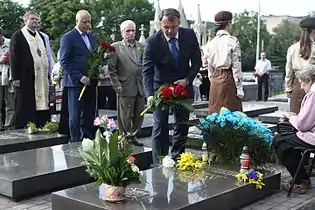 Голова Львівської ОДА Олег Синютка кладе квіти на могилу Петра Дужого
