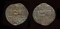 - У 1202 у Венеції почали карбувати срібний дукат — гроссо («матапан») із зображенням на аверсі Христа на троні, на реверсі — дож, який приймає з рук святого Марка стяг.