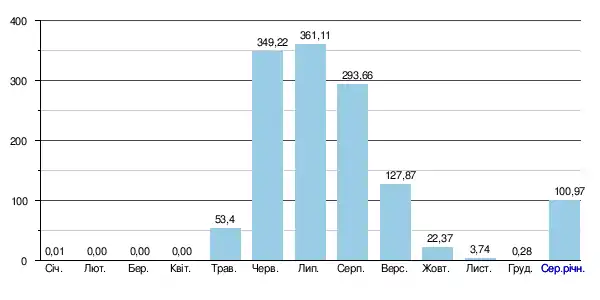 | Середньорічний стік | 101 кубічний метр за секунду |