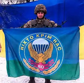 Солдат 1-го взводу 2-ї аеромобільно-десантної роти 1-го аеромобільного батальйону 80-ї окремої десантно-штурмової бригади.