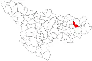 Комуна розташована на відстані[3] 348 км на північний захід від Бухареста, 69 км на схід від Тімішоари.