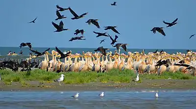 Серед колоніальних птахів територія Дунайського біосферного заповідника найвагоміша для малого баклана — до 1000 пар та косаря — до 360 пар. Досить численні в заповіднику великий баклан, сіра, руда, мала та велика білі чаплі, квак, річковий та рябодзьобий крячки; також в заповіднику нерідкі кормові зграї рожевого пелікану, що налічують до кількох тисяч особин. Трапляється і кучерявий пелікан.