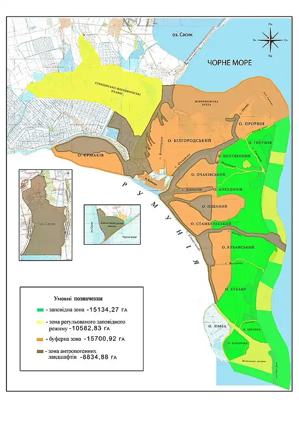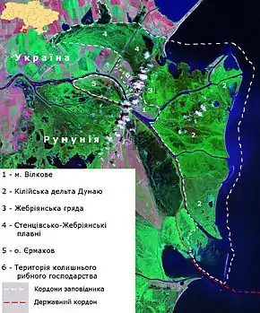 ![]() Супутниковий знімок території Дунайського біосферного заповідника Супутниковий знімок території Дунайського біосферного заповідника | |
