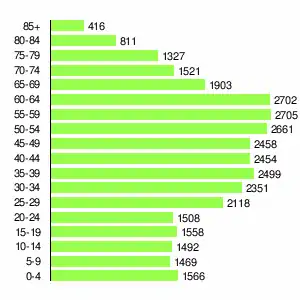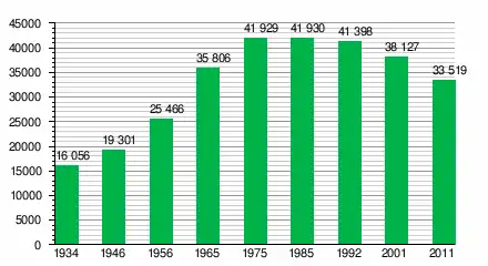 За даними перепису населення 2011 року у місті проживали 33 519 осіб.
