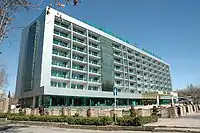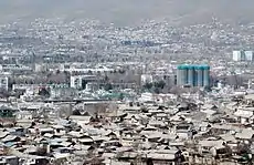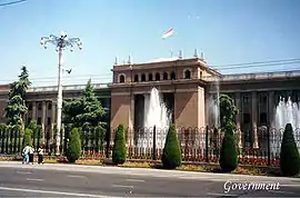 ![]() Вид на головні новобудови сучасного Душанбе — Палац Нації (Президентський), Парк Рудакі з пам'ятником поетові | ||||