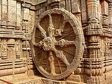 Дхармачакра, Дгармачакра (санскр. धर्मचक्र, dharmacakra IAST «колесо дхарми», «колесо закону») — символ дхарми, вчення Будди про шлях до просвітління, звільнення від кармічних перероджень у сансарі[1]. Традиційно зображується у вигляді стилізованого колеса з вісьмома спицями (інколи з п'ятьма, шістьма).