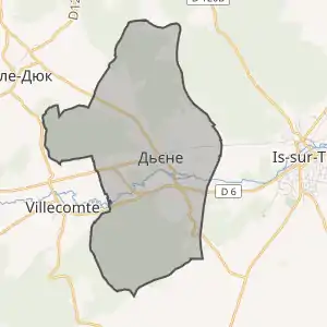- Розташування муніципалітету Дьєне на мапі Франції та сусідні муніципалітети