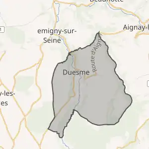 - Розташування муніципалітету Дюем на мапі Франції та сусідні муніципалітети