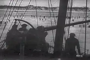 ![]() Британська корабельна артилерія прикриває евакуацію союзних військ з району Дюнкерка. 29 травня 1940 Британська корабельна артилерія прикриває евакуацію союзних військ з району Дюнкерка. 29 травня 1940 | |||||||
