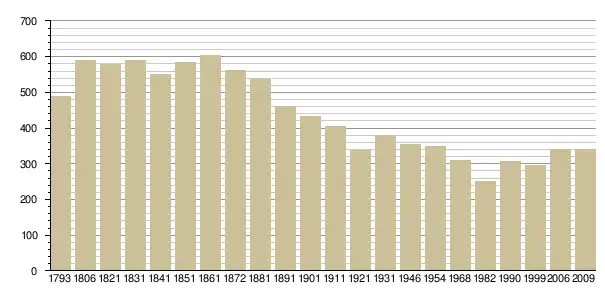 Динаміка населення (base Cassini de l'EHESS pour les nombres retenus jusque 1962[3], base Insee à partir de 1968 (population sans doubles comptes puis population municipale à partir de 2006)[4] · [5] ):