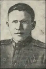 Відзначився в період з 5 по 19 жовтня 1943 року. Просуваючись у бойових порядках батальйону, артилеристи брали участь у відбитті п'яти контратак противника, підбили 12 танків.