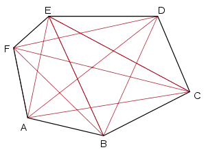 Нехай — кількість вершин багатокутника, обчислимо — кількість можливих різних діагоналей. Кожна вершина з'єднана діагоналями з усіма іншими вершинами, крім двох сусідніх і, звичайно, самої себе. Таким чином, з однієї вершини можна провести діагоналі; помножимо це на кількість вершин