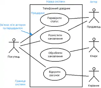 Діаграма прецедентів (або діаграма варіантів використання) — в UML, діаграма, на якій зображено відношення між акторами та прецедентами в системі.[1]
